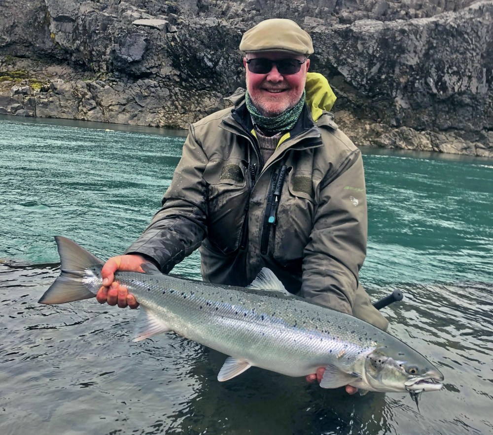 Veiðin fór vel af stað þann 27. júní í Jöklu. Hér á myndinni er breski veiðimaðurinn Niall Morrisson með fyrsta lax sumarsins sem hann fékk á hitch í Hólaflúð á opnunarmorgni þann 27. (Ljósm. ÞE) Sett var í 15 laxa á þessu fyrsta degi og af þeim komu 9 að landi og flestir yfir 80 sm og vel haldnir. Byrjunin lofar því góðu enda er vatnsmagn og vatnshiti hagstæðari þessa upphafsdaga heldur en í fyrra þegar enn var mikið leysingavatn á ferðinni á sama tíma.